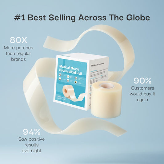 A single, medical-grade hydrocolloid roll that protects, absorbs, and heals. No more running out of patches or overpaying for single use dots.
